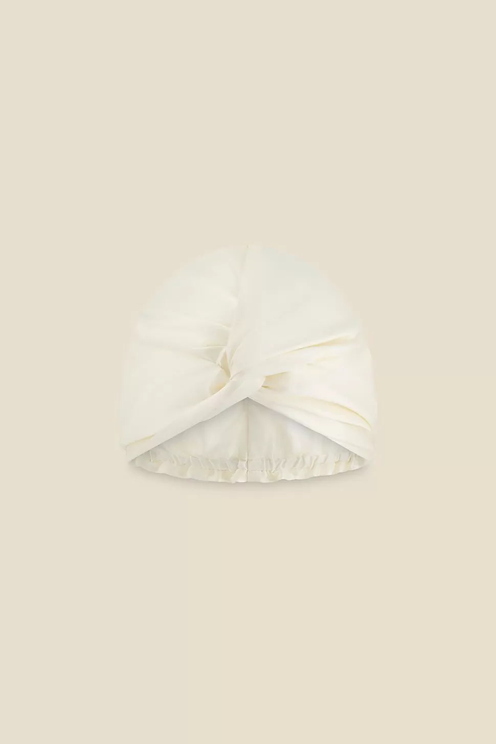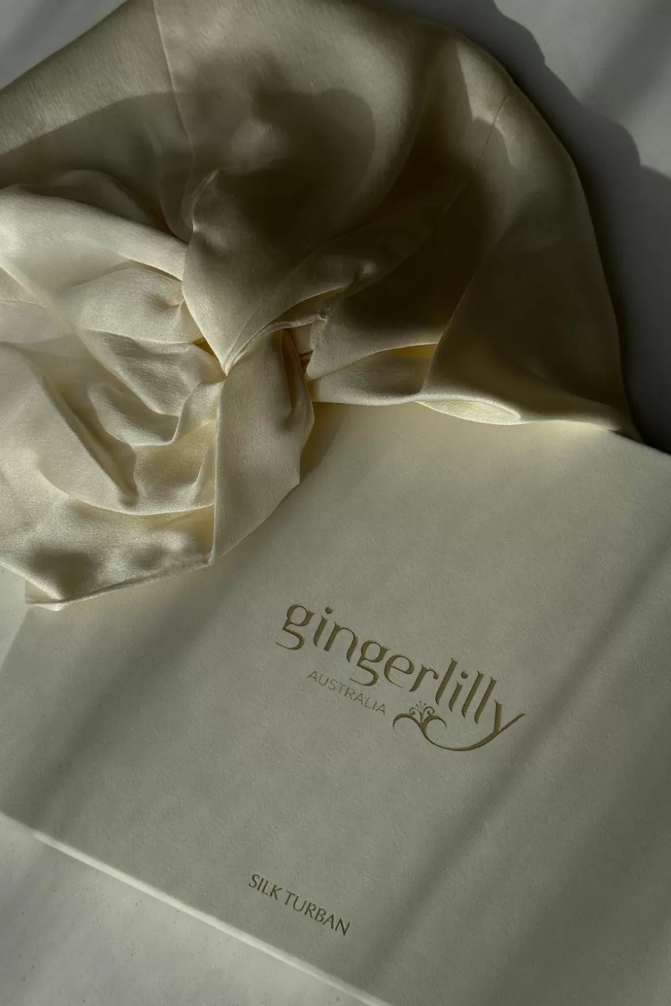 The Majestic turban in ivory made from pure silk by Gingerlilly. Crafted from certified organic 6A graded mulberry silk at 22 momme, it offers the best of luxury and comfort. Our turbans offer a soft, smooth texture and stylish solution for hair care and fashion. Ideal for protecting hair while sleeping or adding a chic touch to any outfit, our silk turbans are gentle on hair and promote moisture retention. Enjoy the benefits of hypoallergenic and breathable silk, available in a variety of colours to match your personal style.